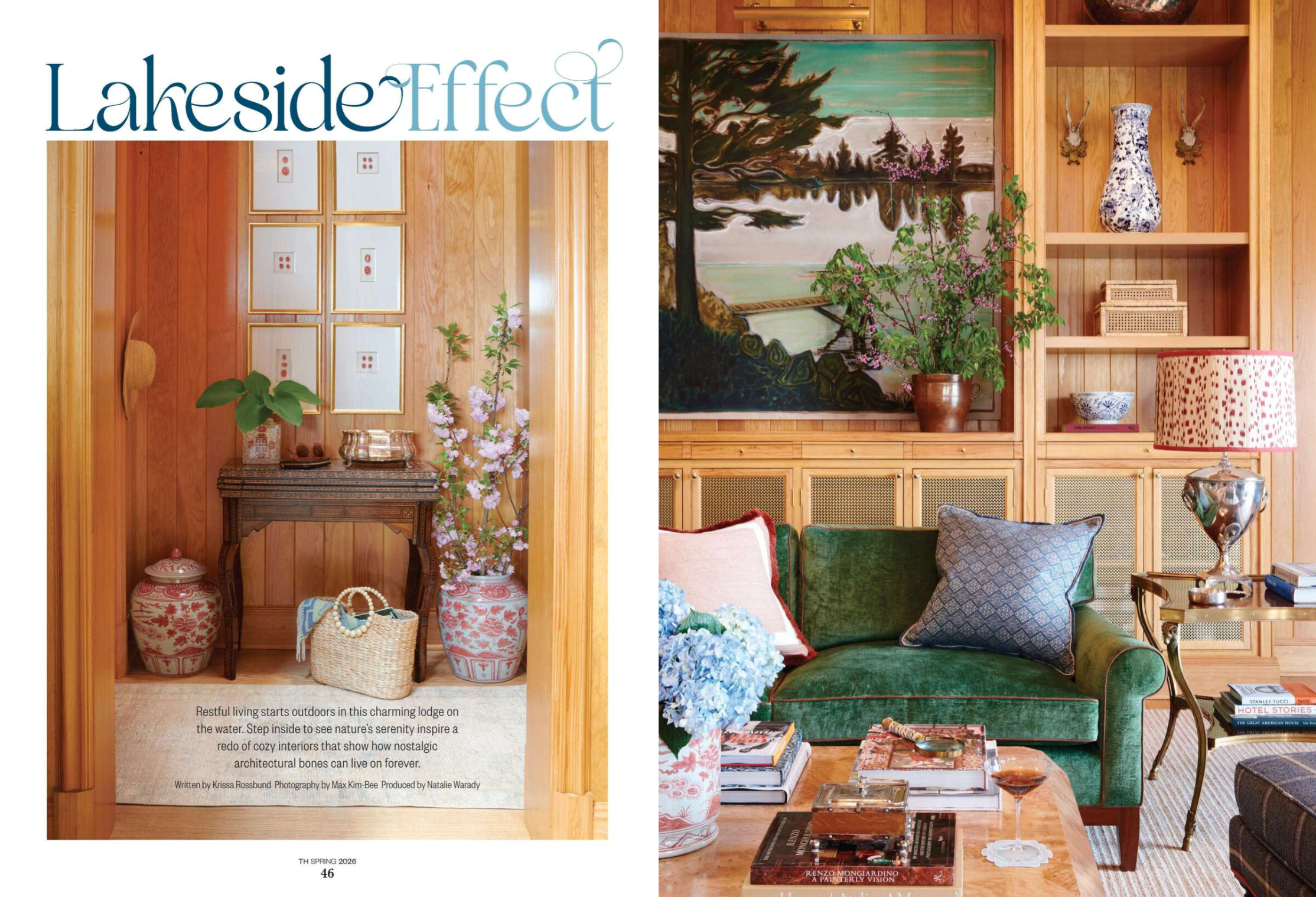 “Her approach to the functional and decorative facelift was not to ignore the home’s nostalgic lodge orgins, but to lighten its palette and unveil an updated, fresh ambience.”